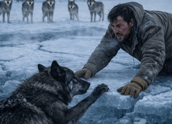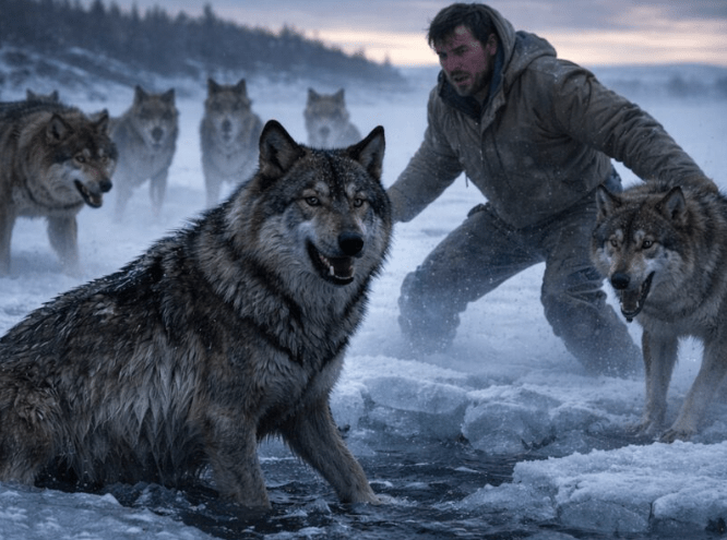Kada je stigao do zaleđene površine, prizor koji je ugledao zauvijek mu se urezao u pamćenje. Na tankom ledu borila se trudna vučica koja je upala u ledenu vodu i pokušavala da se izvuče, ali svaki njen pokret bio je sve slabiji. Led se lomio pod njom, a voda je neumoljivo gutala prostor oko njenog tijela. Njene oči su odavale paniku, ali i iscrpljenost, dok su očajnički pokušaji da se spasi postajali sve bezuspješniji. Čovjek je na trenutak ostao ukočen, svjestan da gleda borbu između života i smrti koja se odvija tik pred njim.